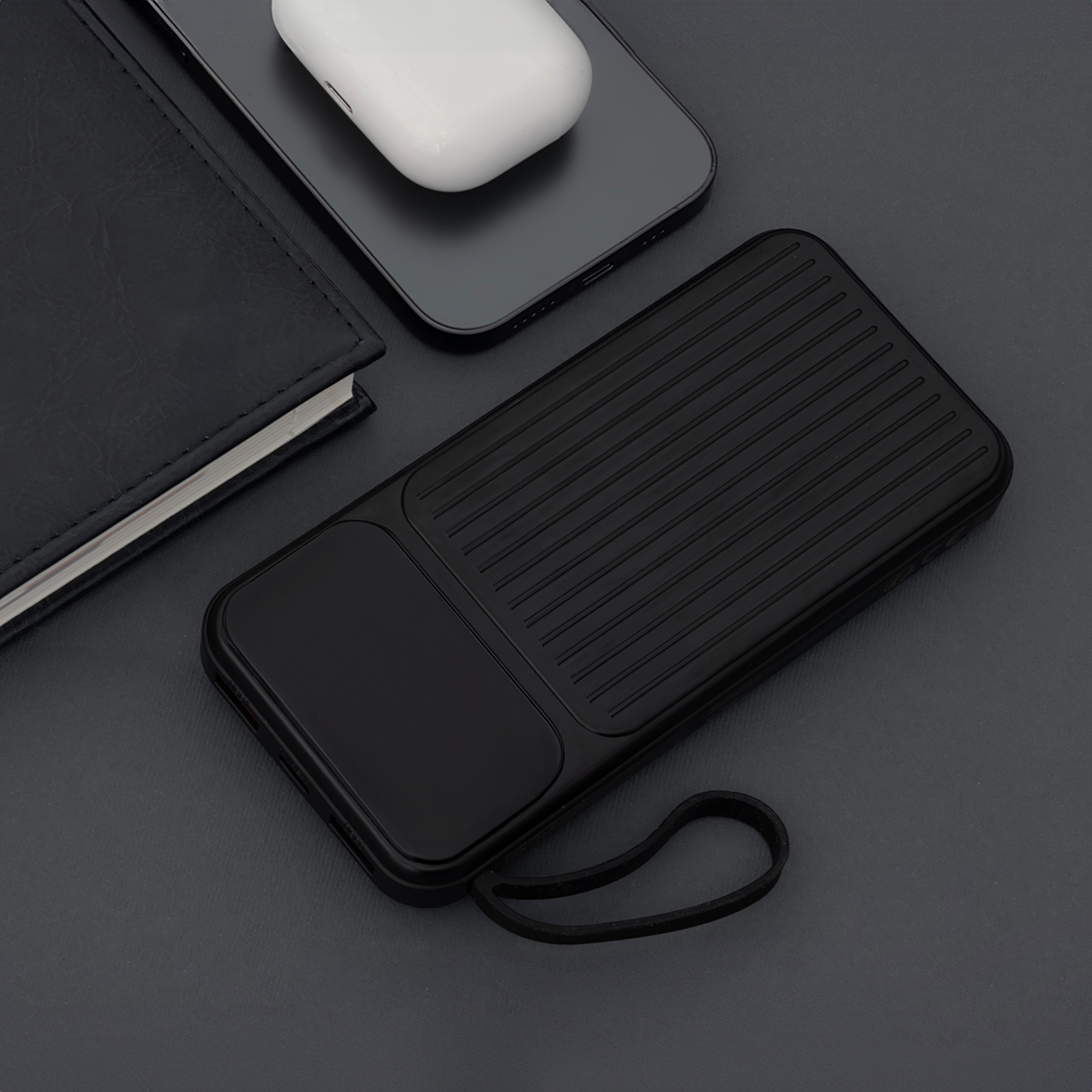 equipped with integrated USB-C and Lightning cables, discreetly incorporated into the case.