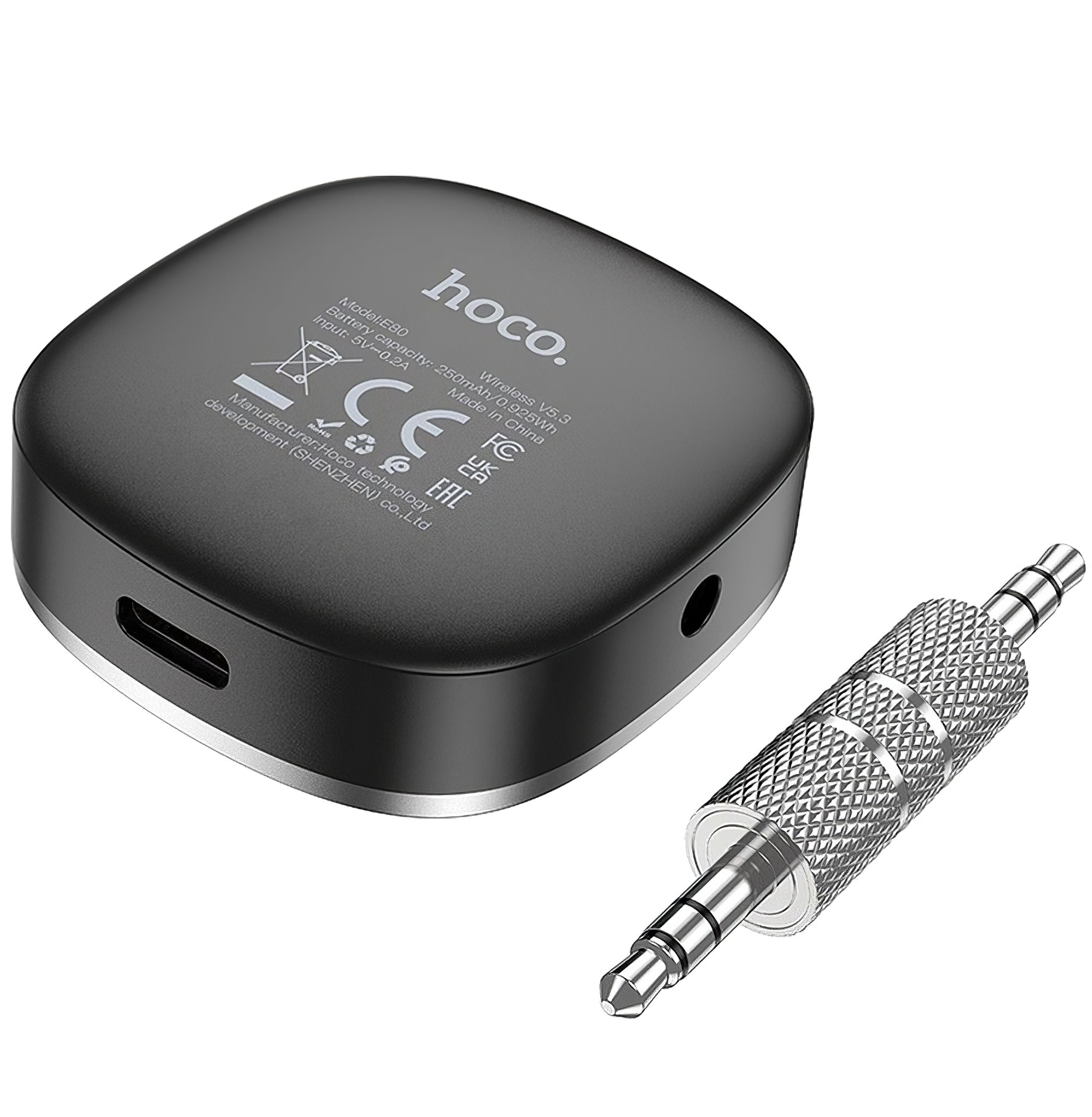 The HOCO E80 Bluetooth Receiver connects to the 3.5mm Jack port of your car, speaker, or headphones,