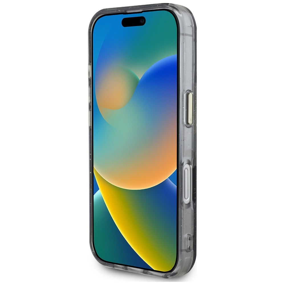 MagSafe Case for Apple iPhone 16, Guess, IML Metal Glitter Flowers Triangle, Black